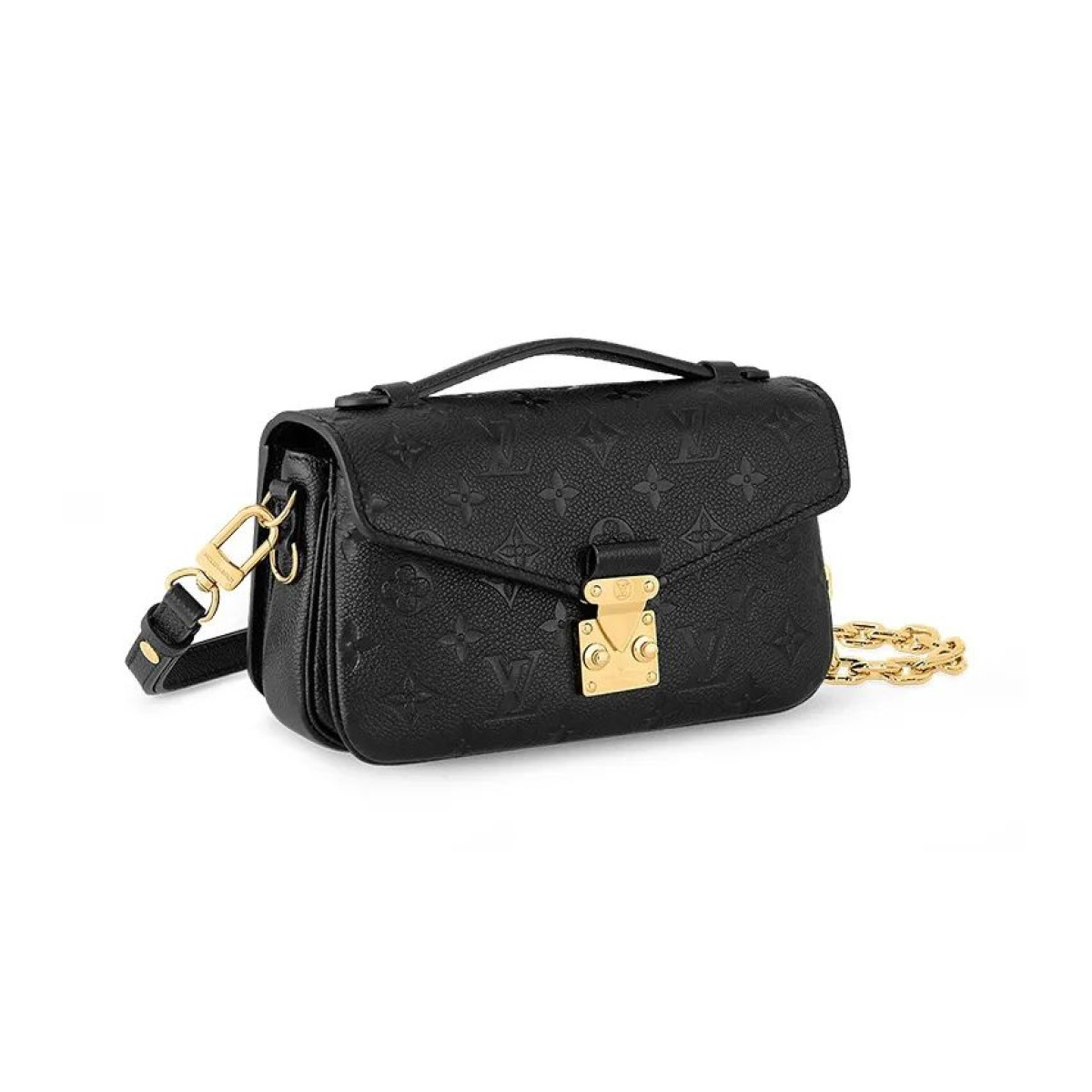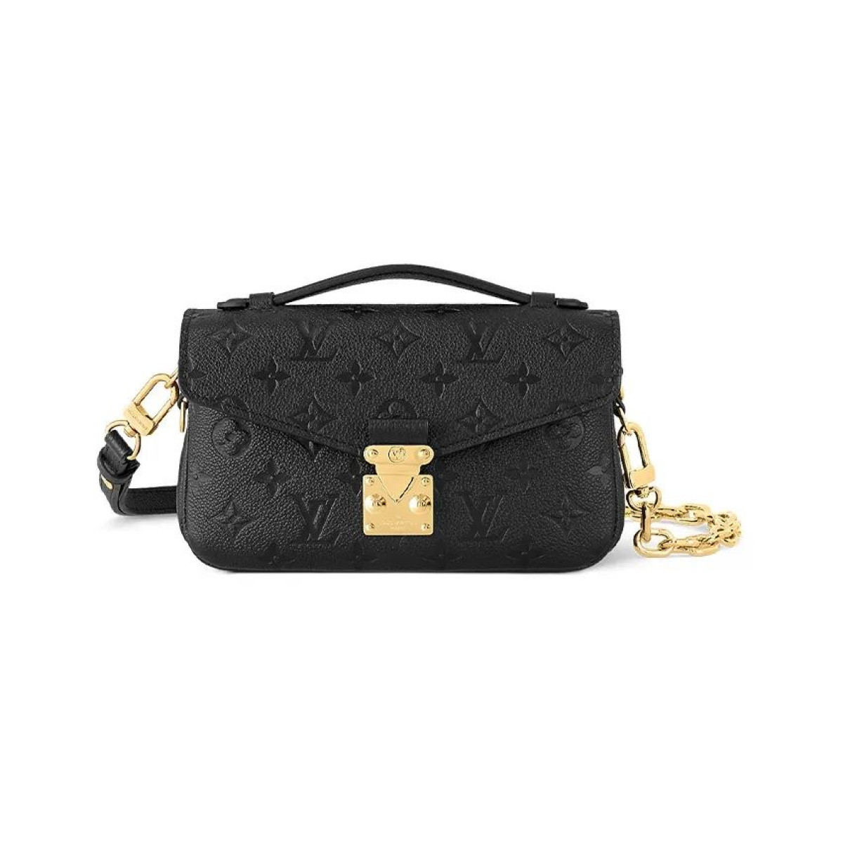 Pochette Metis East West Detachable and Adjustable Shoulder Strap S-lock Embossed Soft Grain Leather Small Messenger Bag Handbag Crossbody Shoulder Bag Women's Black